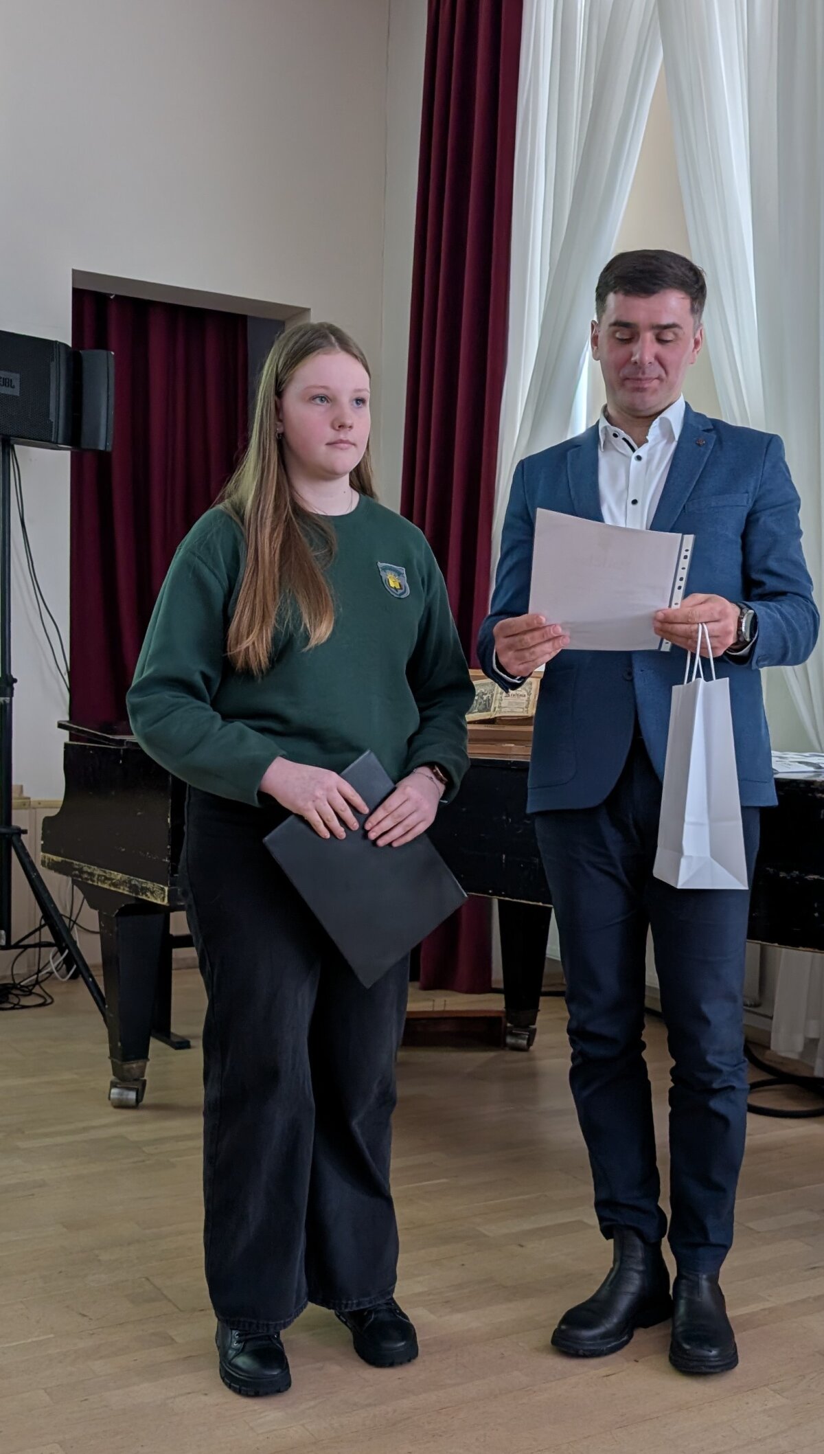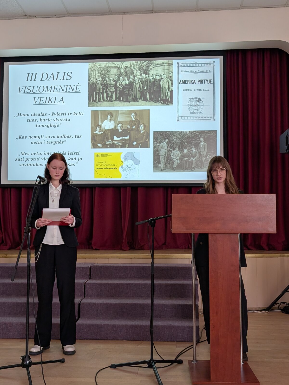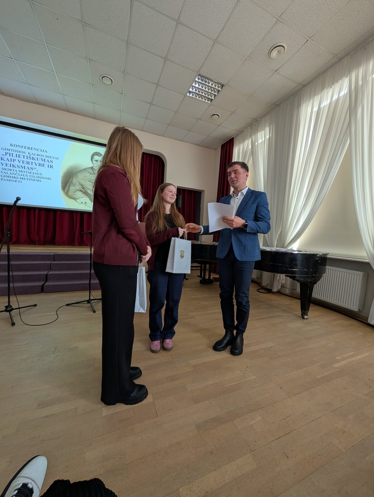 Konferencijos organizatorės - mokytojos Violeta Rimkuvienė ir Elytė Žirgulienė - padėkojo buvusiai mokinei, pedagogei Evelinai Tarasevičiūtei, dirbančiai Klaipėdos Vytauto Didžiojo gimnazijoje. Evelina noriai sutiko dalyvauti konferencijoje su savo mokine Goda Charlamova. Mokinė pristatė pranešimą apie Vytautą Kernagį, kurio pilietiškumas tebeskamba dainose ir žodyje.
