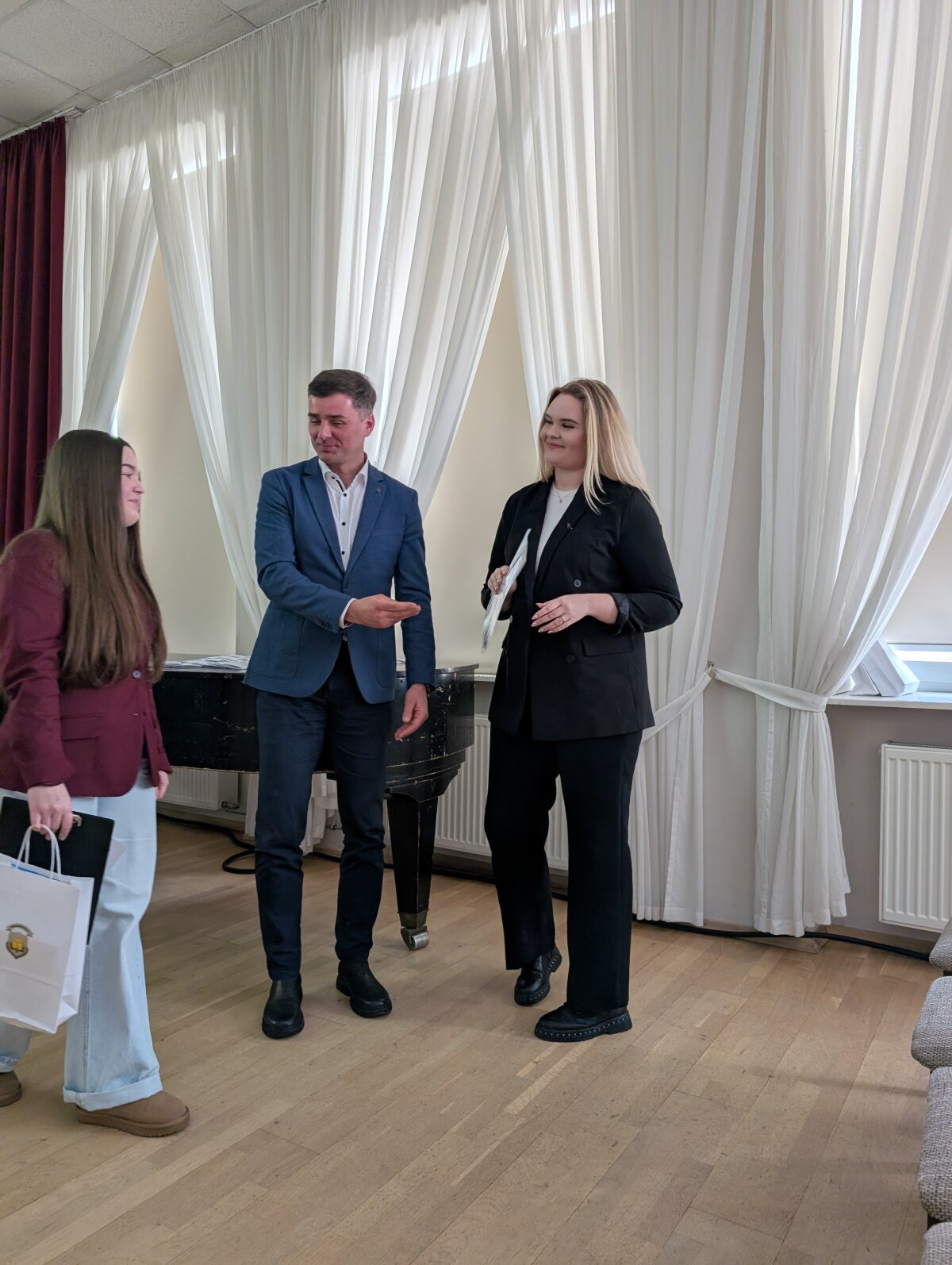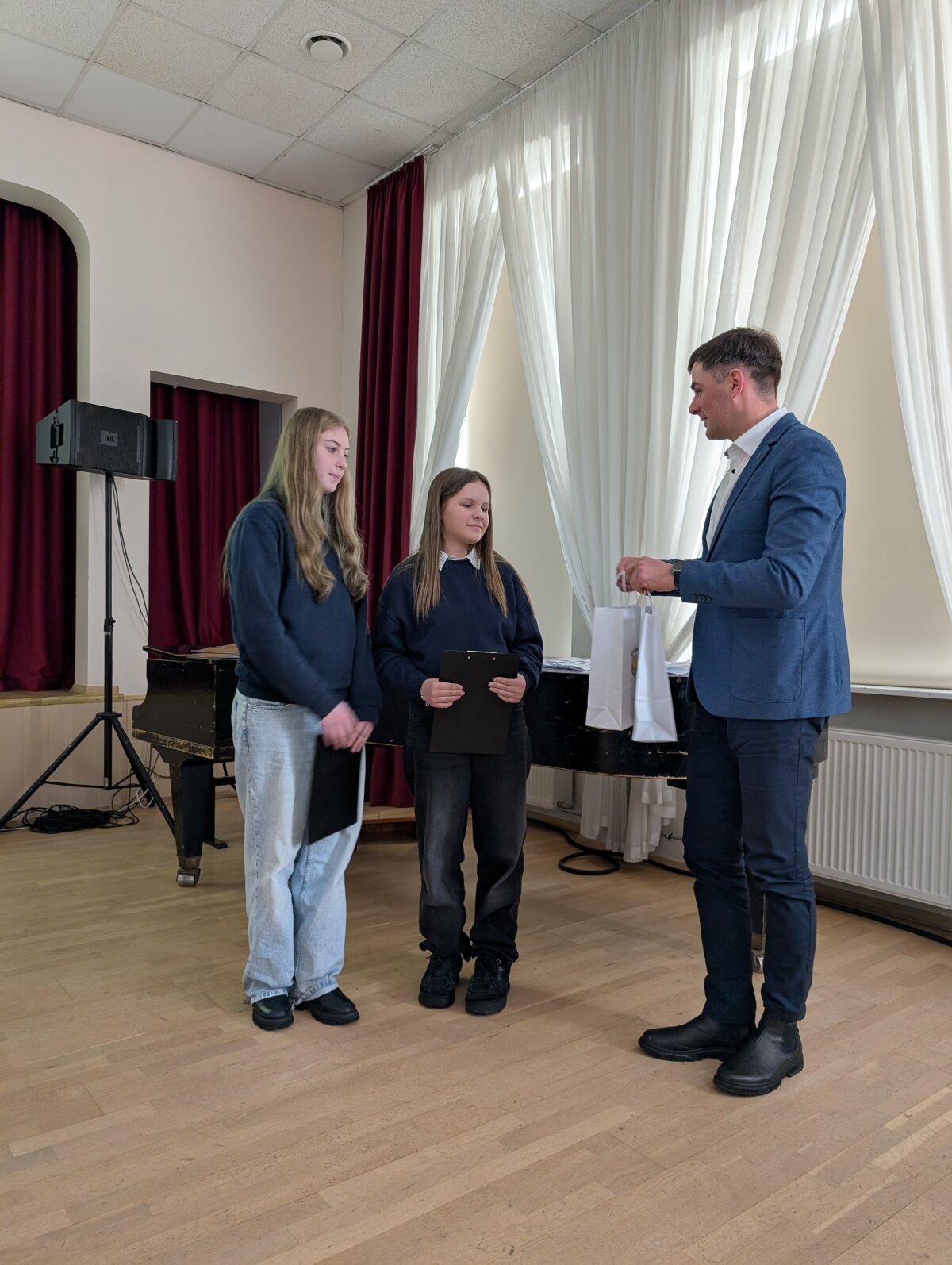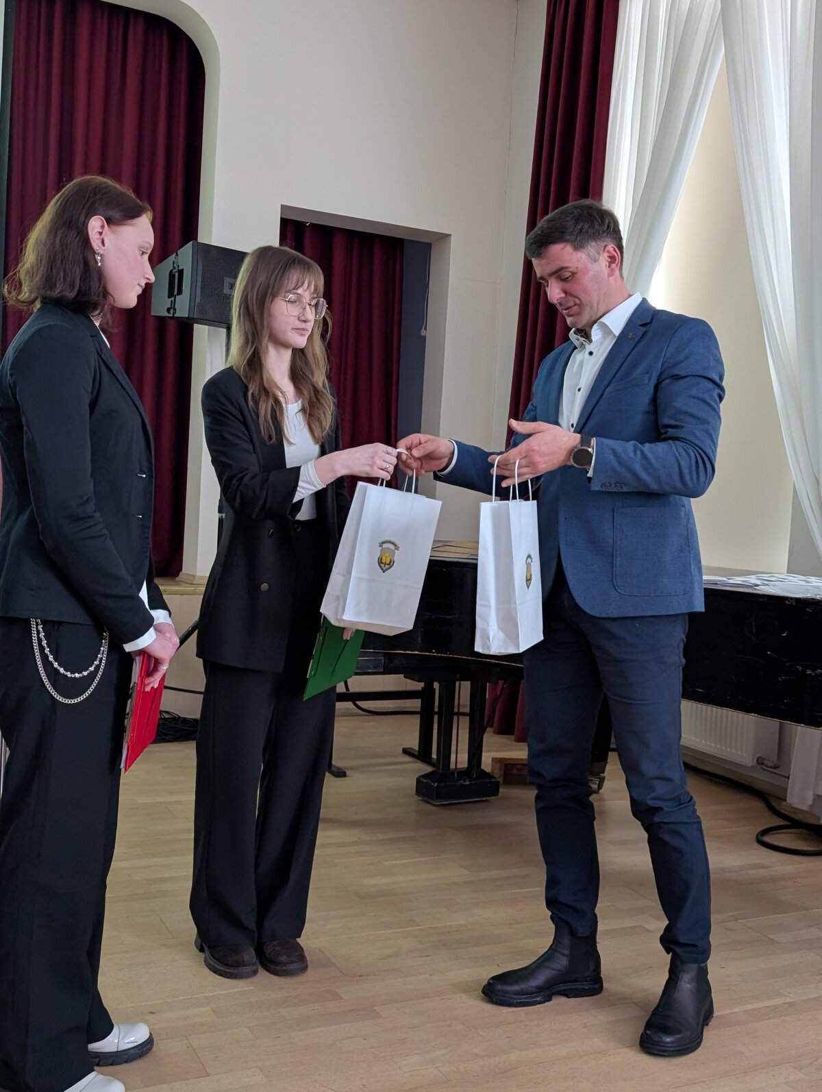 Konferencijos organizatorės - mokytojos Violeta Rimkuvienė ir Elytė Žirgulienė - padėkojo buvusiai mokinei, pedagogei Evelinai Tarasevičiūtei, dirbančiai Klaipėdos Vytauto Didžiojo gimnazijoje. Evelina noriai sutiko dalyvauti konferencijoje su savo mokine Goda Charlamova. Mokinė pristatė pranešimą apie Vytautą Kernagį, kurio pilietiškumas tebeskamba dainose ir žodyje.