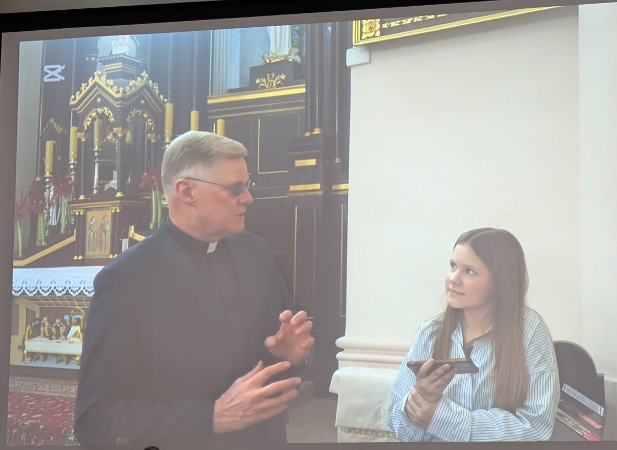 Įspūdinga konferencijos pradžia nukėlė visus į 19-ą amžių, kai Lietuva išgyveno sudėtingą laikotarpį - daugelis žmonių buvo menko išsilavinimo, nemokėjo net skaityti, savo sunkią dalią skandino alkoholizmo liūne. Tokią situaciją vaizdingai atskleidė vyskupo rūbais apsirengęs IVg klasės mokinys Tomas Jonutis. Jis papasakojo dvasininko biografiją, nuveiktus darbus, akcentavo svarbiausias vertybes, kuriomis žmogus turi vadovautis. Plungės rajono Žemaitijos kadetų gimnazijos Žemaičių Kalvarijos skyriaus mokinės skaitė ištraukas iš M. Valančiaus kūrinių, šios mokyklos mokinių ansamblis atliko nuotaikingą žemaitišką dainą.